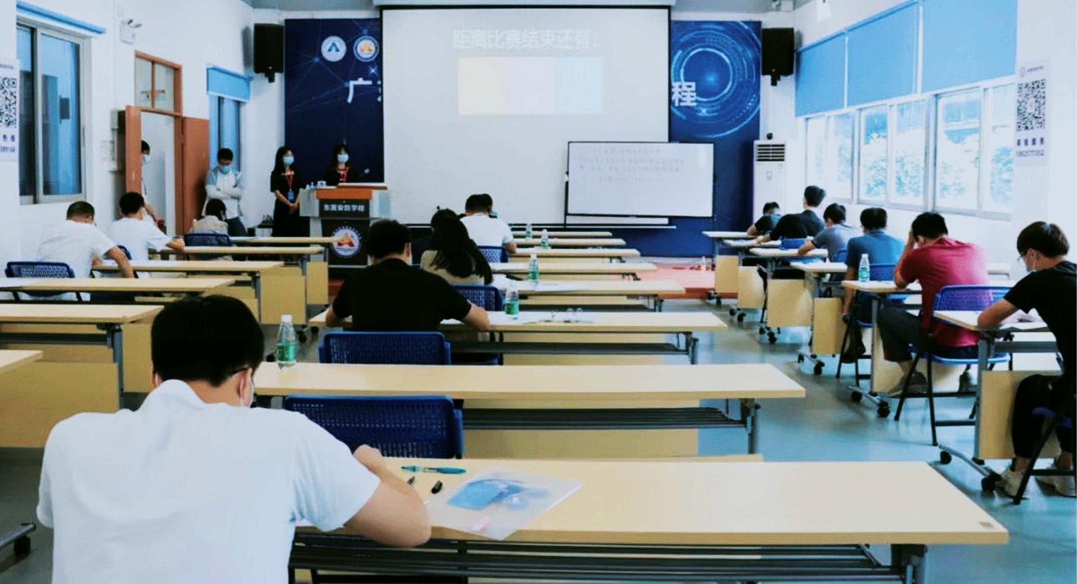 初賽共設(shè)廣州、深圳、東莞、珠海、韶關(guān)5個賽區(qū),各賽區(qū)在同一時間進行競賽。初賽采用理論知識考核方式開展,以筆試形式進行。考核內(nèi)容涵蓋安防職業(yè)道德規(guī)范、安防行業(yè)相關(guān)法律法規(guī)、安全防范系統(tǒng)裝調(diào)維修基礎(chǔ)理論等,兼具理論性與實踐性。不同以往的單一人工監(jiān)考,本屆競賽,主辦方通過在線智慧監(jiān)控系統(tǒng),采用云平臺技術(shù),對5個賽區(qū)競賽賽場情況同步進行遠程實時監(jiān)看,更好地保障競賽公平公正。